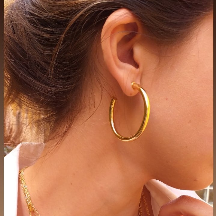 Se quiser ficar ainda mais elegante e sexy, faça um coque alto meio solto e coloque seus brincos de argola da Jaspe Semijoias