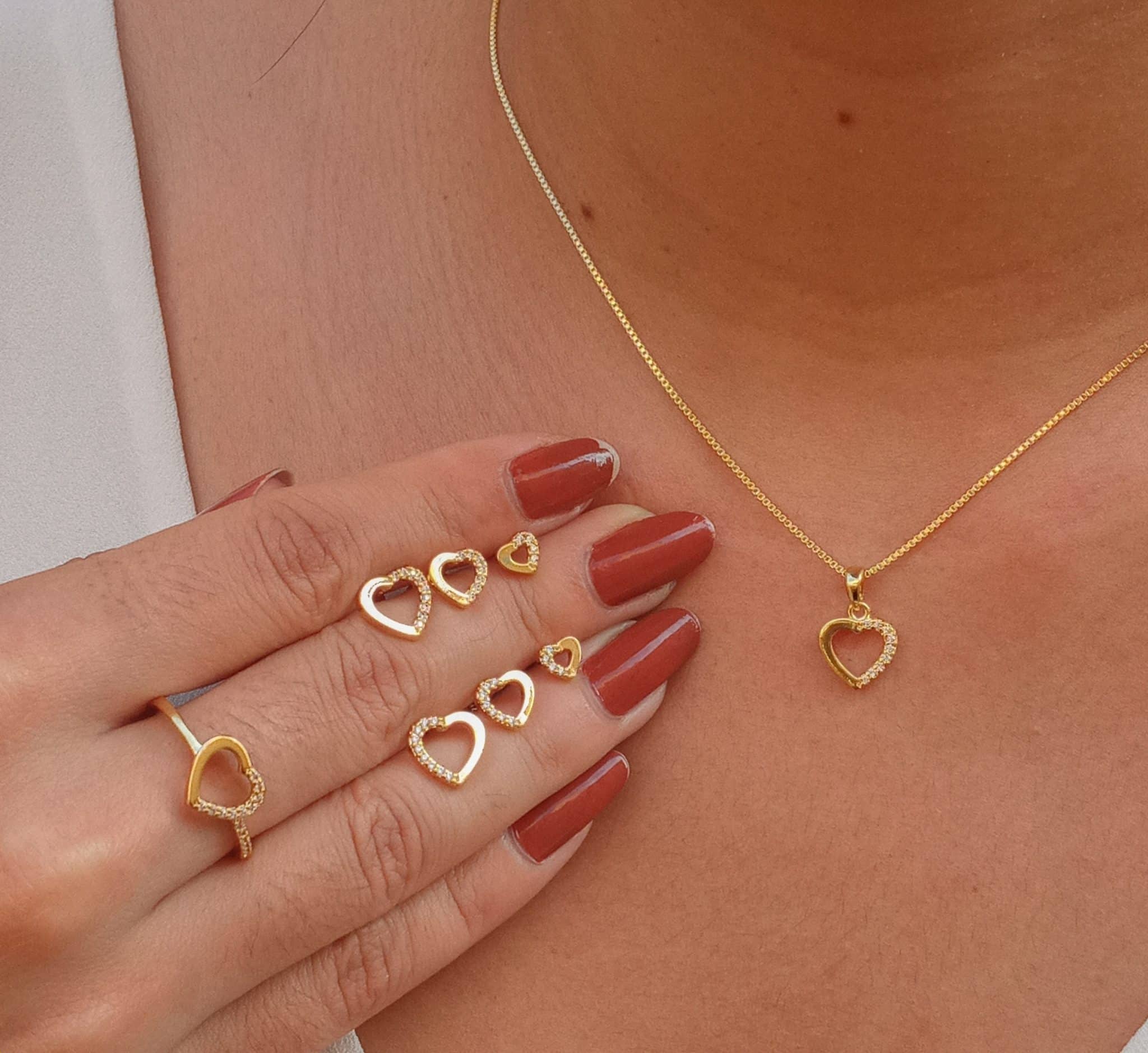Anel Coração Micro Zircônia Folheado Ouro 18K. Se você ama acessórios de coração, precisa investir nessa delicadeza em forma de anel.