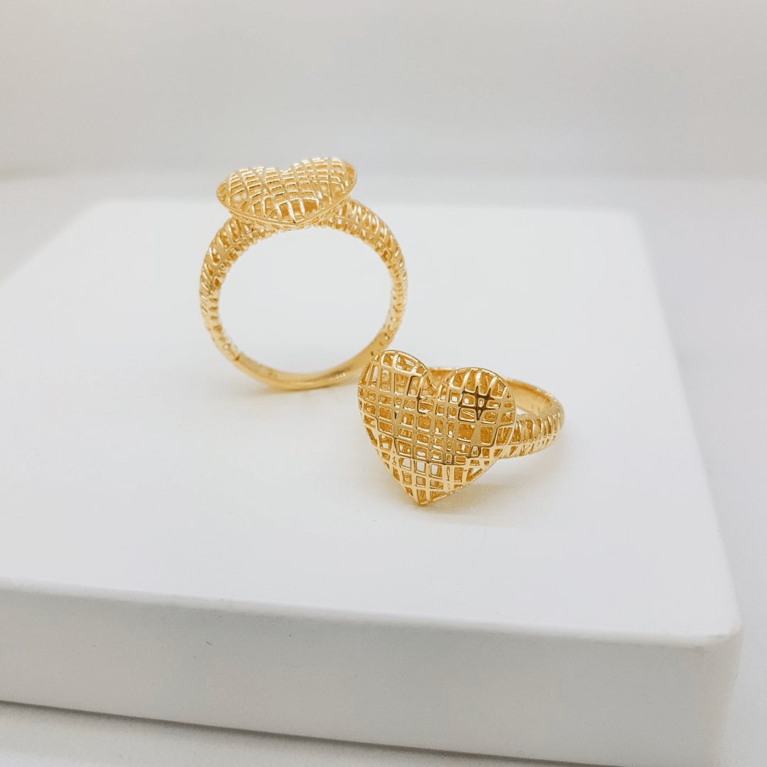 Anel Coração Renda Italiana 15mm Banho Ouro 18k