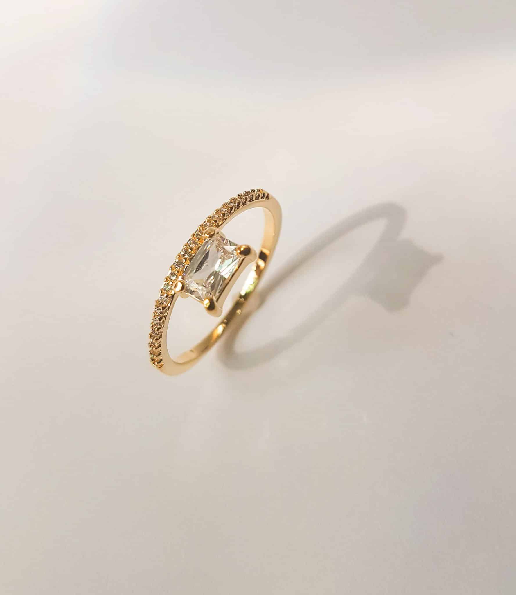 Anel Cravejado Micro Zircônia e Zircônia Banho Ouro 18K