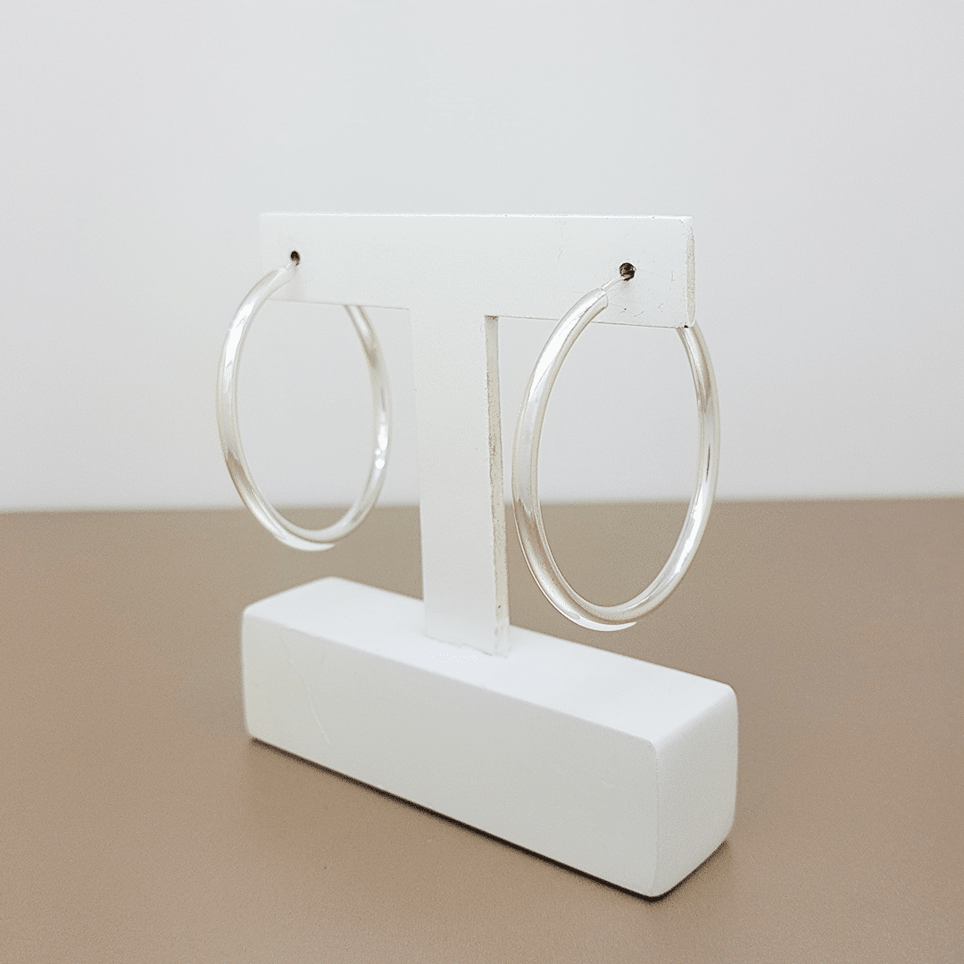 Argola Prata 925 Tubo Liso 38mm