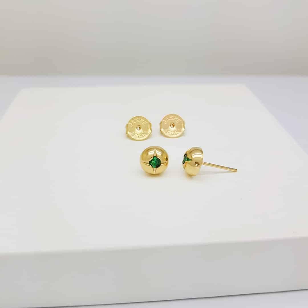 Brinco Meia Bola c/ Zircônia – Folheado a ouro 18k, com formato meia bola e aplicação de zircônias que realçam o brilho da peça.