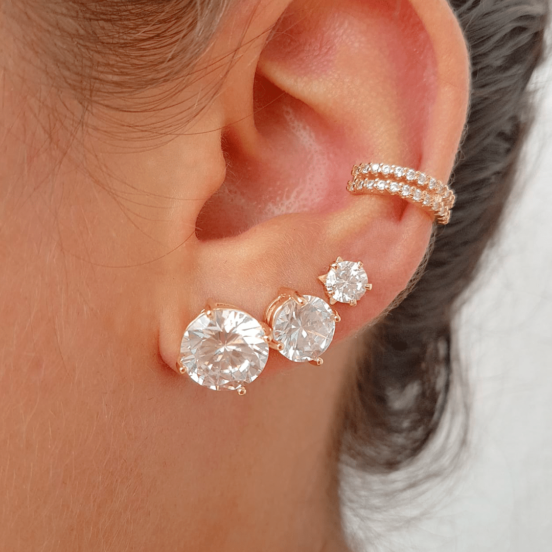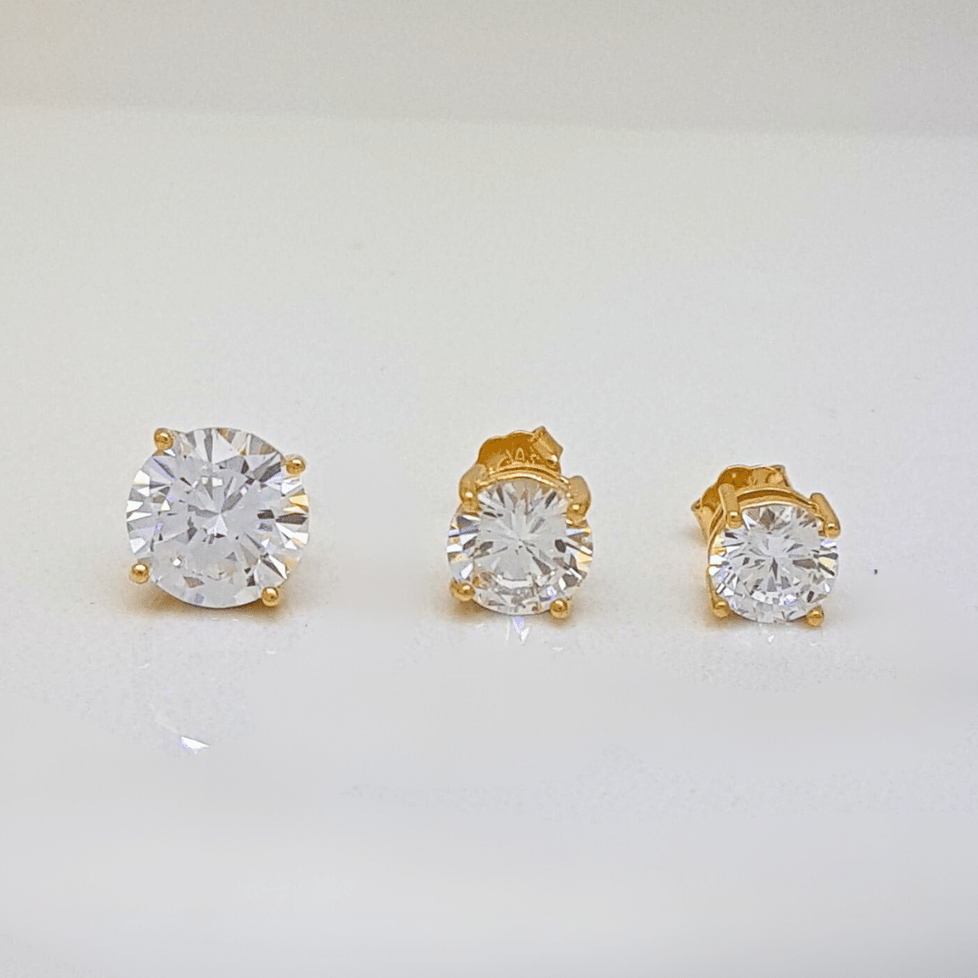 Brinco casual e lindo! Brincos Solitários de Pedra em Zircônia banhado a ouro 18k, com zircônias de vários tamanhos: 10, 8, 6 e 5mm, e acabamento polido. Garanta o seu e lucre ainda mais!