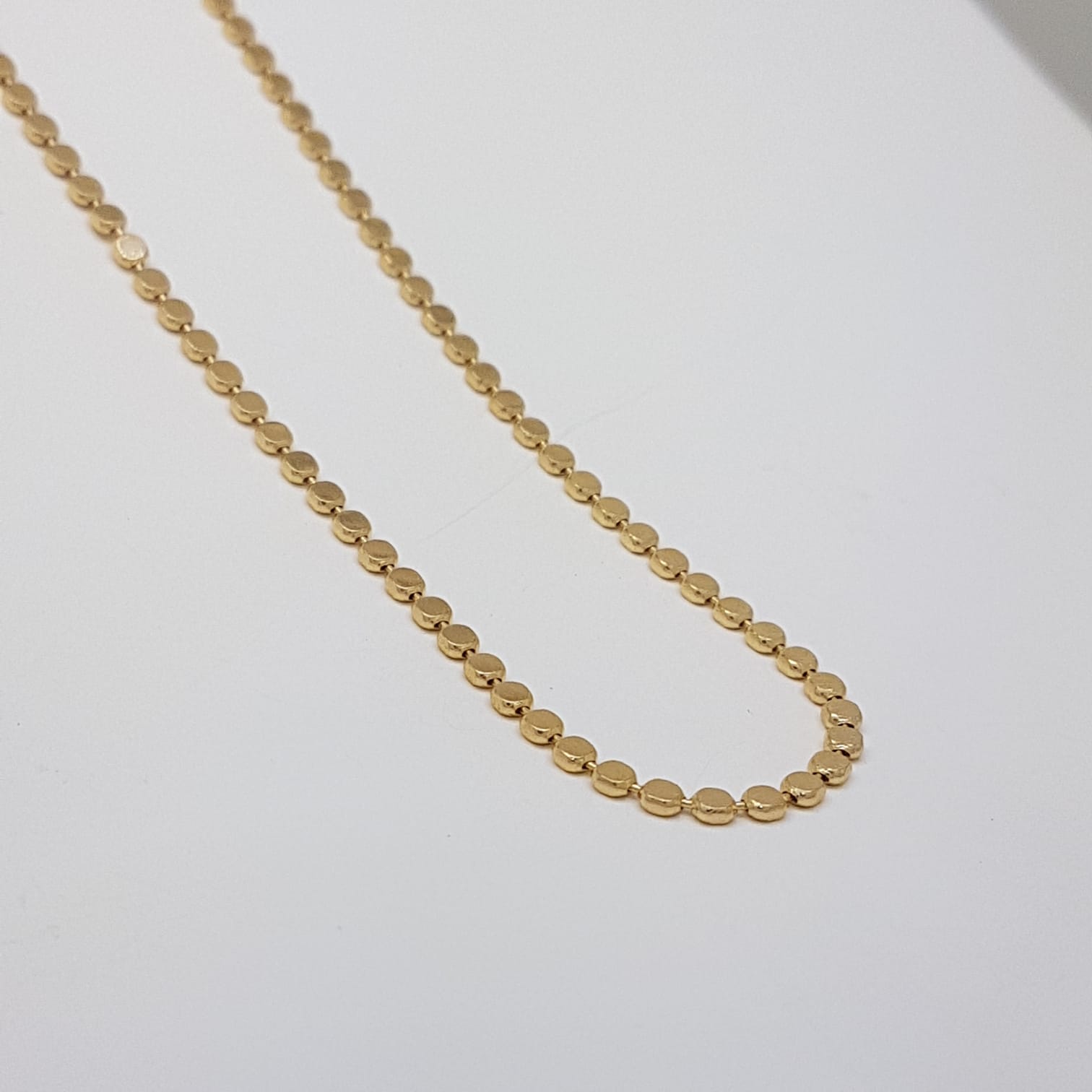 Colar Bolinha Chata Folherado Ouro 18K 1mm 40cm+5cm