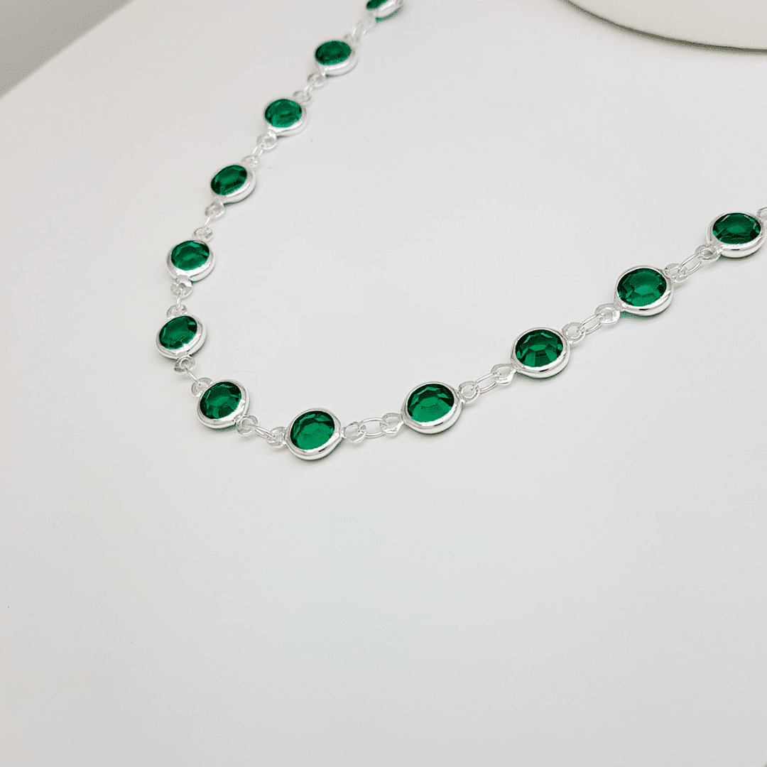 Colar e Pulseira Pedra Verde Redonda 7mm
