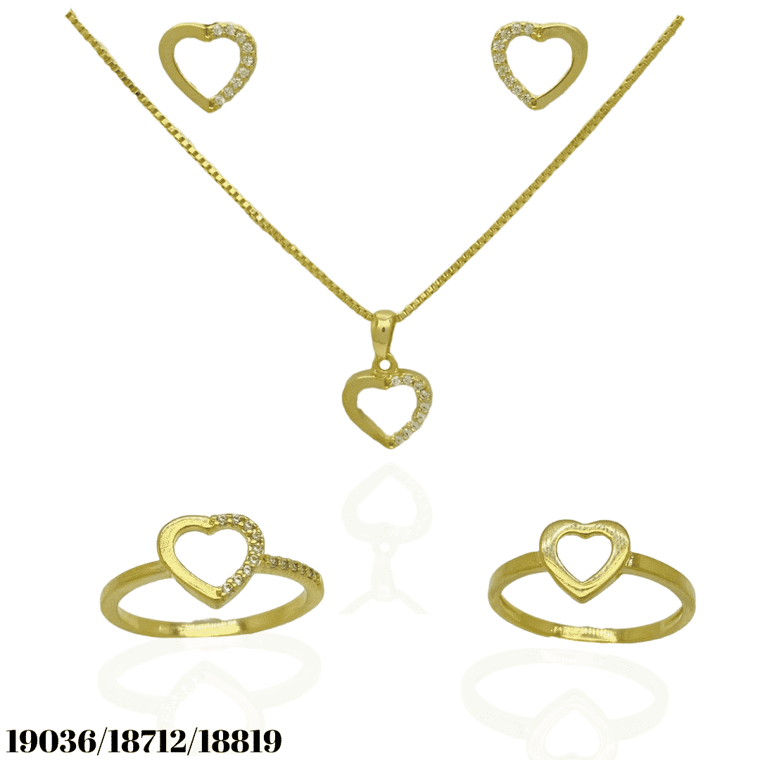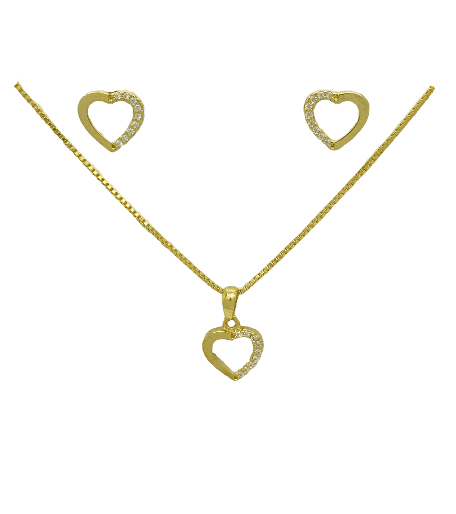 Conjunto Coração Vazado Zircônia – Banho Ouro18k