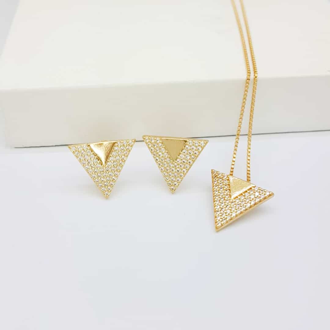 Conjunto Triângulo Micro Zircônia folheado a ouro 18K: