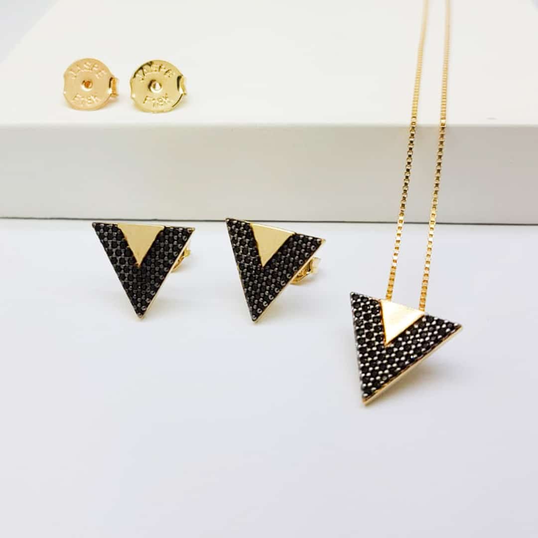 Conjunto Triângulo Micro Zircônia folheado a ouro 18K: