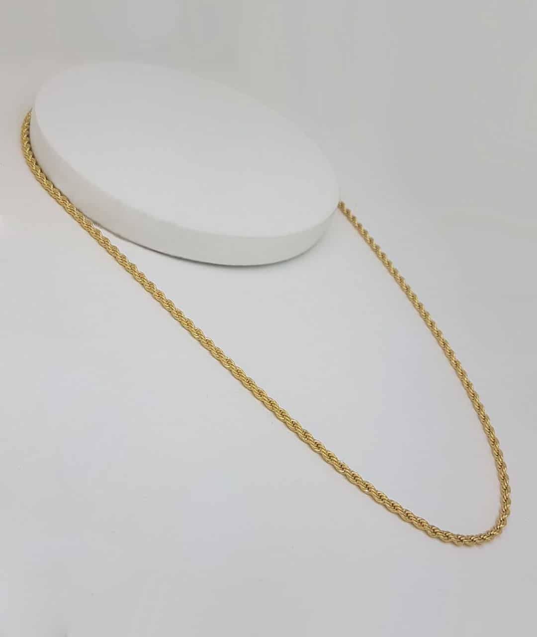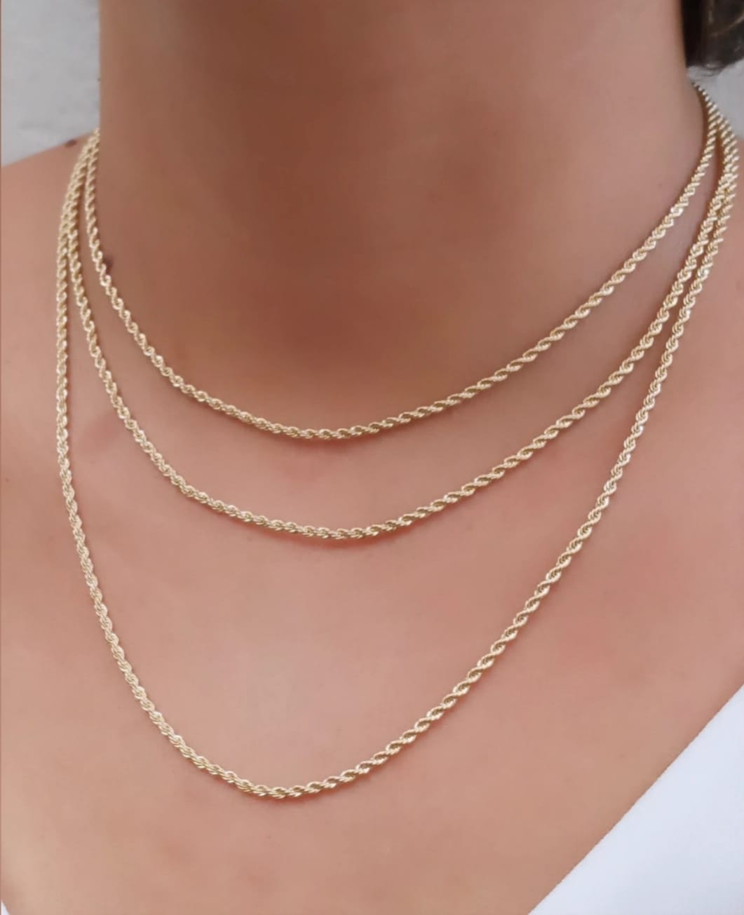 Linda Corrente Cabo de Aço 2mm – Combina com pingentes mais robustos e maiores ou então compor looks com chokers e mix de colares. Ideal para uma venda casada! Banhada a ouro 18k, disponível nas medidas de 30, 40, 45, 50 e 60 centímetros.