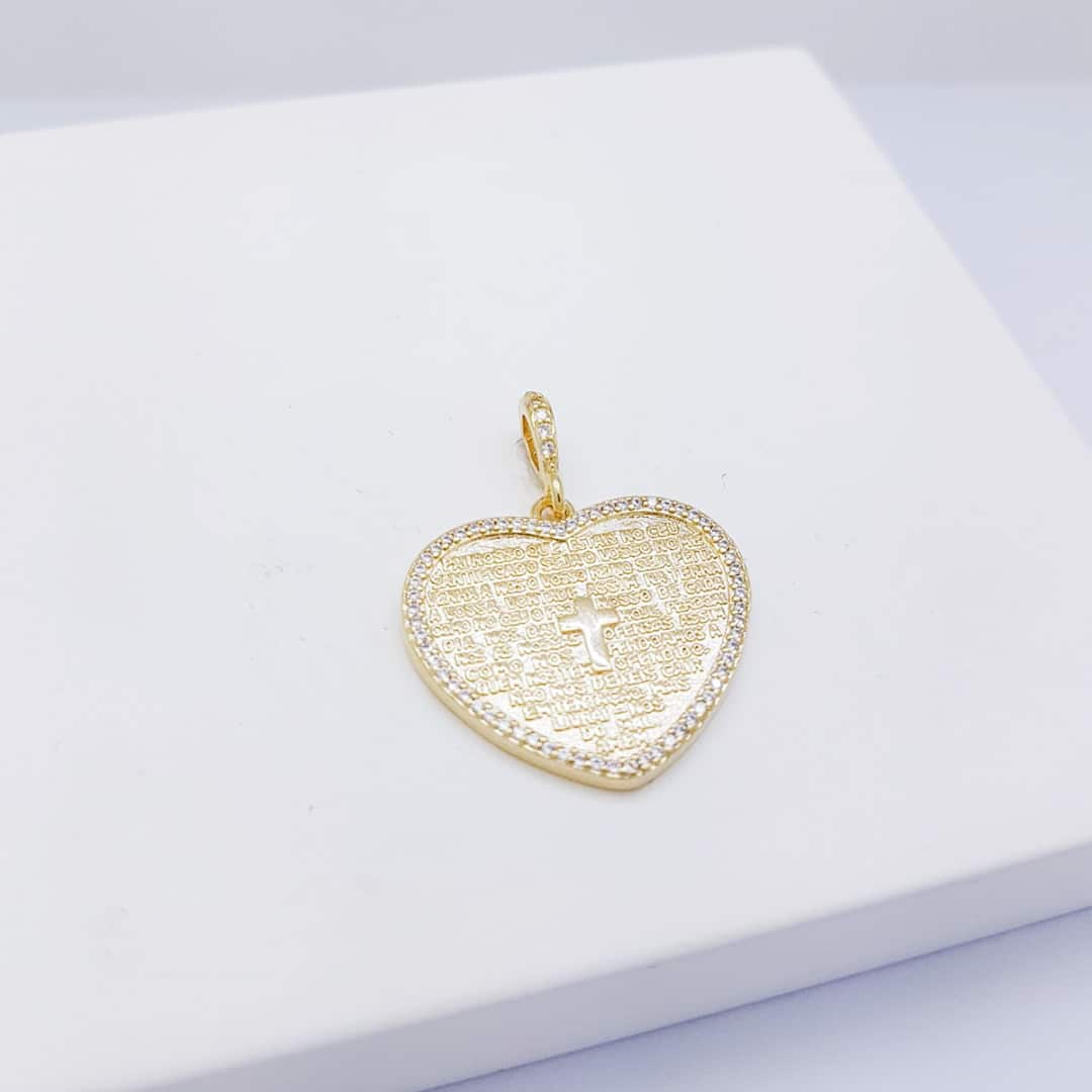 O formato de coração aliado à oração do Pai-Nosso transforma o pingente em um símbolo de amor, esperança e conexão espiritual.