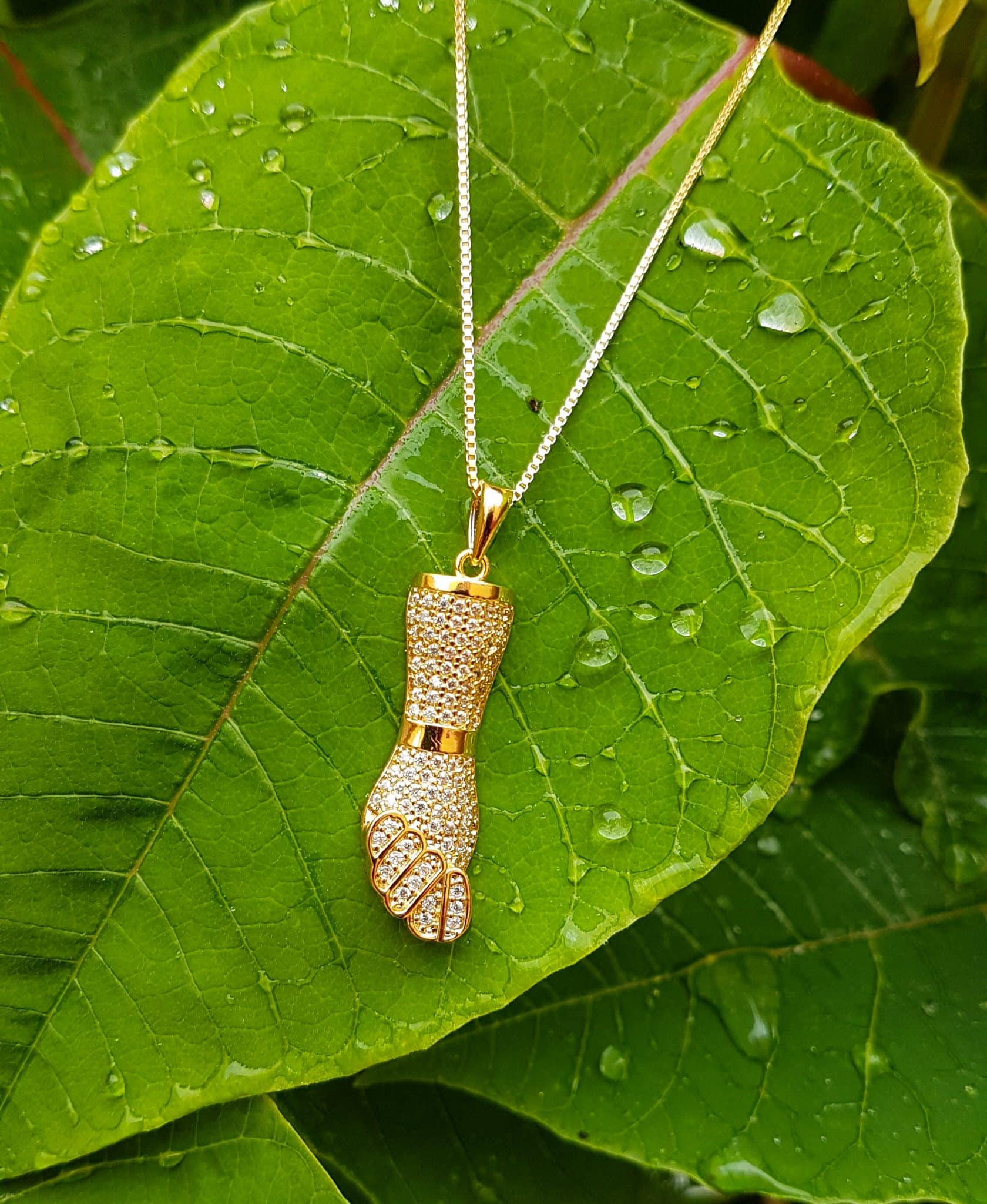 Pingente Figa Cravejado Micro Zircônias Folheado Ouro 18K – Perfeito para compor o seu look com muito brilho e elegância.