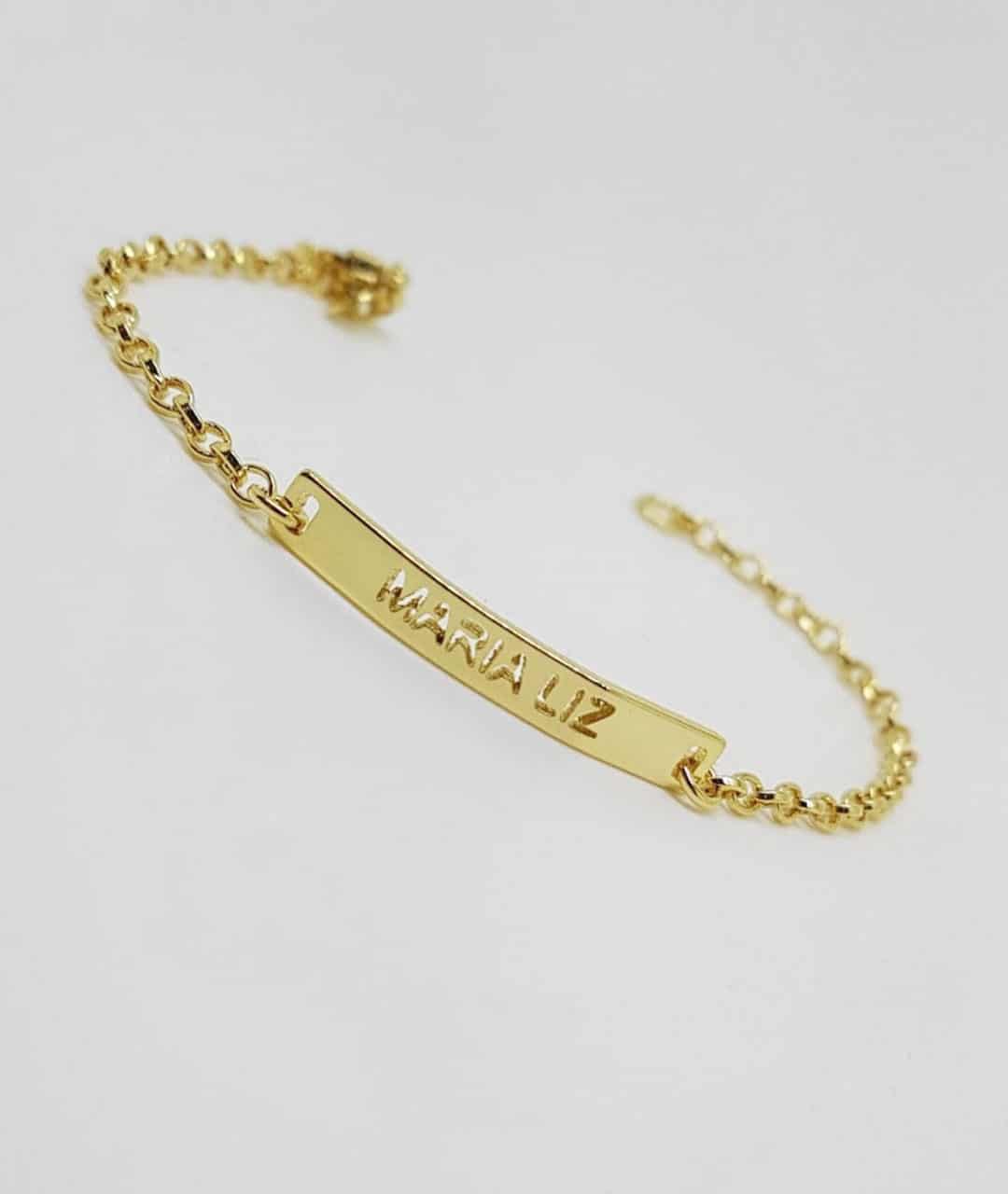 A placa personalizada torna a pulseira uma lembrança única e significativa que pode ser guardada como uma recordação especial dos primeiros anos de vida do bebê. Além disso, a pulseira pode ser usada diariamente e é um belo acessório para complementar o visual do bebê. A combinação da delicadeza da pulseira com a personalização da placa torna essa semijoia uma escolha popular para pais e familiares que buscam uma maneira especial de comemorar a chegada de um novo membro da família.