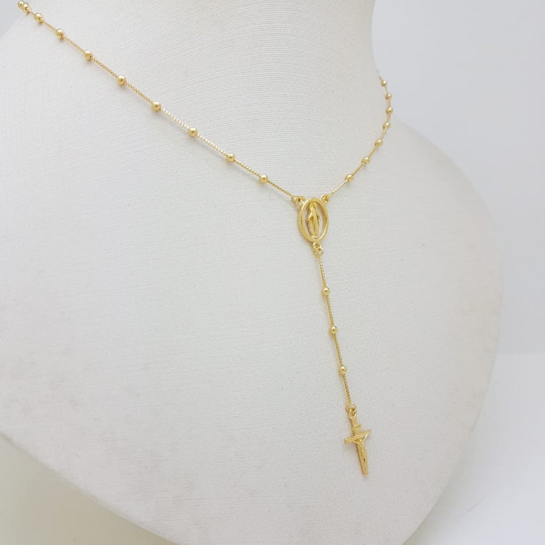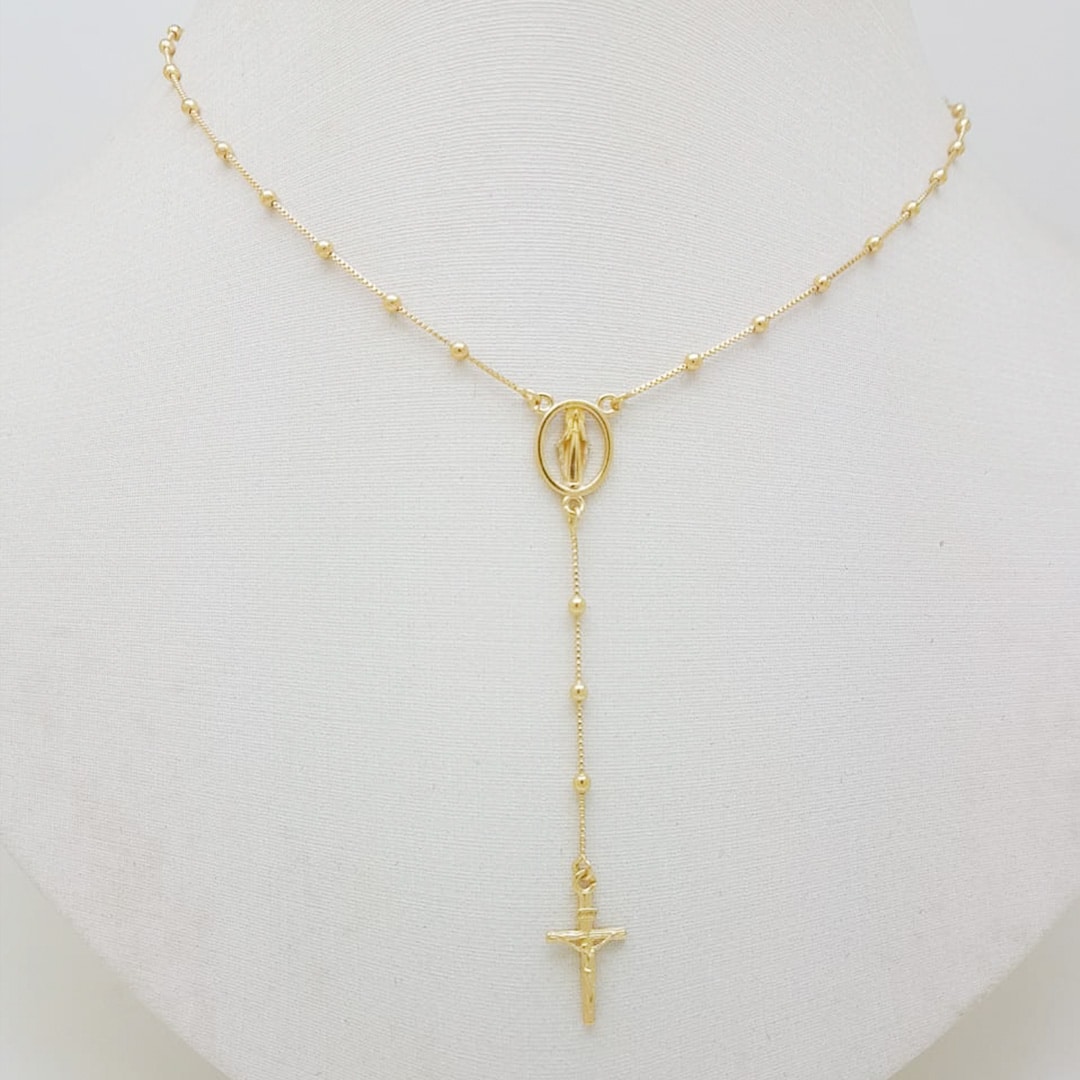 O Terço de Bolinha Nossa Senhora das Graças reflete fé, proteção e elegância. Seu design delicado com pequenas esferas e banho de ouro 18k cria um visual leve e refinado, perfeito para quem valoriza peças com significado.