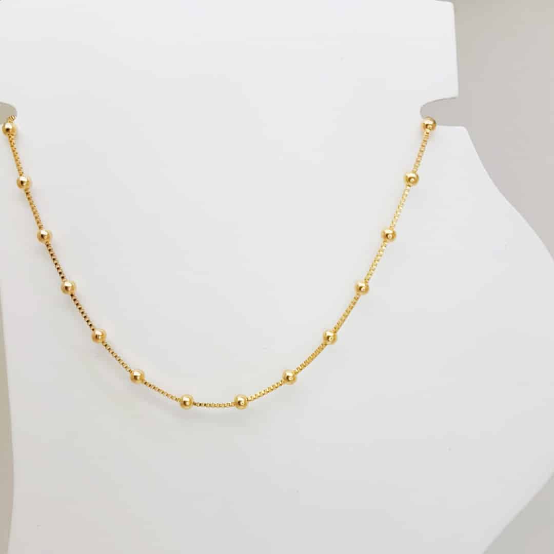 Delicada, moderna e super versátil, a tornozeleira veneziana folheada a ouro 18k é ideal para valorizar qualquer look. Seu design com mini esferas ao longo da corrente adiciona um brilho discreto e elegante, perfeito para uso diário ou composição com pingentes leves. Uma peça de alto giro, que agrada diferentes estilos e não pode faltar no catálogo de quem busca sofisticação com leveza.